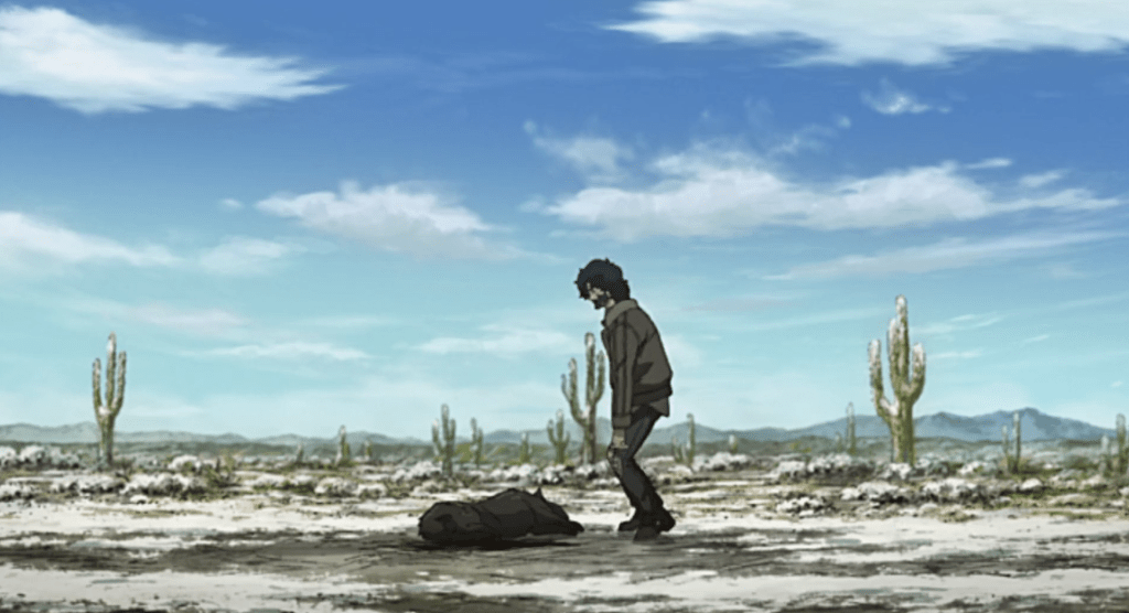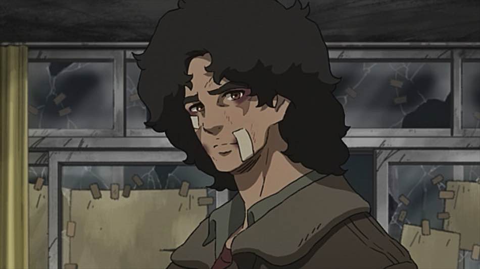 Fans of boxing stories both good and bad have grown accustomed to the protagonist’s opponents being one-note caricatures who exist for the sole purpose of being knocked down. Nomad rises above this trope with finesse. Following in the vein of Megalo Box‘s Yuri, Joe’s three major rivals in Nomad are as fleshed out as he is, each with sympathetic motivations and beautiful arcs that play out alongside Joe’s own. The first arc of Nomad revolves around Joe’s relationship with Chief, a leader of the immigrant community he takes temporary shelter with. Chief is everything “Nomad” Joe isn’t: positive, selfless, and charismatic. He pushes Joe to be the best he can, encourages him to accept his faults and move forward with rectifying them. Their friendship becomes the soul of the story, and it fuels the narrative with an emotional weight that lasts through its conclusion. Chief teaches Joe the importance of empathy and the shortness of life. Liu is a boxing prodigy, the student of Joe’s former rival Yuri. He replaces Joe in the court of public opinion and becomes a stand-in for the Joe of years past: quick, ardent, and likable. Mac, Joe’s last opponent, is a family man who arguably becomes the protagonist of the anime’s final act. The gravitas the show gives his arc is resonant, and it’s impossible to not sympathize with him after receiving an intimate portrait of his family life and the way mega-corporations have ruined his body. Mac most clearly mirrors the aging Joe, and the depths explored in each of these characters makes it hard to choose who to root for in their final bout.