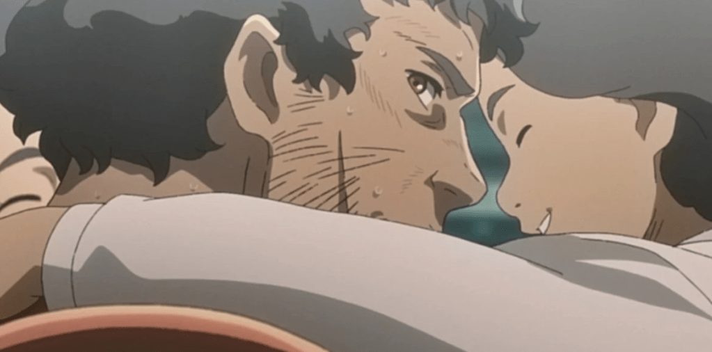 Joe begins the process of self-discovery again while assimilating with an immigrant community, fully engaging with their lifestyle and culture. Battling a brutal addiction and fear of returning home, this Joe is for the first time unbelievably human. His many plights and anxieties help the audience latch onto him, and I was moved to tears by his journey several times. The strongest part of Ashita no Joe‘s story is arguably its reliance on character depth; the manga’s Joe Yabuki is examined in great detail, entire panels dedicated to his melancholic gaze. Both Joe and Nomad feature boxing protagonists, but the stories are more about who that character is rather than the foes they punch out. The original manga muses about the concept of identity, of finding yourself in what you love. When the passions that define you are taken away, what’s left? Ashita no Joe and Nomad reach different answers to this question. Joe Yabuki lives and dies to throw punches, for the animalistic thrill of putting his being on the line. Nomad‘s Joe begins this particular journey in a similar way, but regret and loss build him into an entirely different man than his predecessor in Ikki Kajiwara’s manga. The oppressive gloom from the beginning of the season eventually gives way to gentleness as Joe determines what is more important to him than fighting, and the story’s optimistic trajectory is a welcome change from Ashita no Joe‘s original grim conclusion.