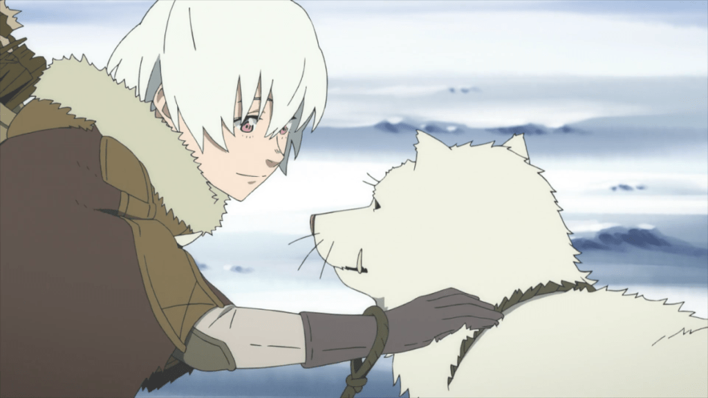 To Your Eternity retains Ooima’s heavy emphasis on deep characters and heart-breaking story arcs despite being a much longer story and implementing fantastic elements into its premise and setting. The single television season depicts the 14-year journey of a nameless being, later dubbed “Fushi,” as it learns what it means to be human through a series of relationships forged with various social outcasts. Fushi begins life as a small orb, created by a divine being to fulfill a mysterious agenda. Fushi has the supernatural ability to transform into some of the different life forms it comes across, specifically after the other being dies. In these forms, Fushi does not age and heals from any wounds. Upon arriving on earth, it quickly adopts the form of a solitary rock and then a white wolf shortly after—the body with which it begins its epic travels in earnest.