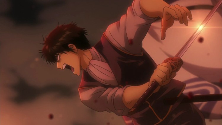 Gintama‘s character-driven tonal balance operates in a similar vein. The main difference between Yakuza and Gintama is that the default tone is reversed; Gintama is a comedy by nature. The foundation of each of its many characters is built through its rapid succession of running jokes and physical humor. This style of humor thrives on fleshing out each character’s respective desires, traits, and ticks. One joke may revolve around policeman Toshirou Hijikata’s obsession with mayonnaise, while another points out how plain of a character the aspiring swordsman Shinpachi Shimura is. Still, neither character is ever completely relegated to a simple recurring gag. Hijikata, Shinpachi, and the rest of the cast are depicted with complete sincerity when Gintama takes a turn for the tragic. Sorachi utilizes many techniques to cast his entire expansive roster of characters in a lovable light, and this long-term strategy pays off when the joking stops and blood is shed.