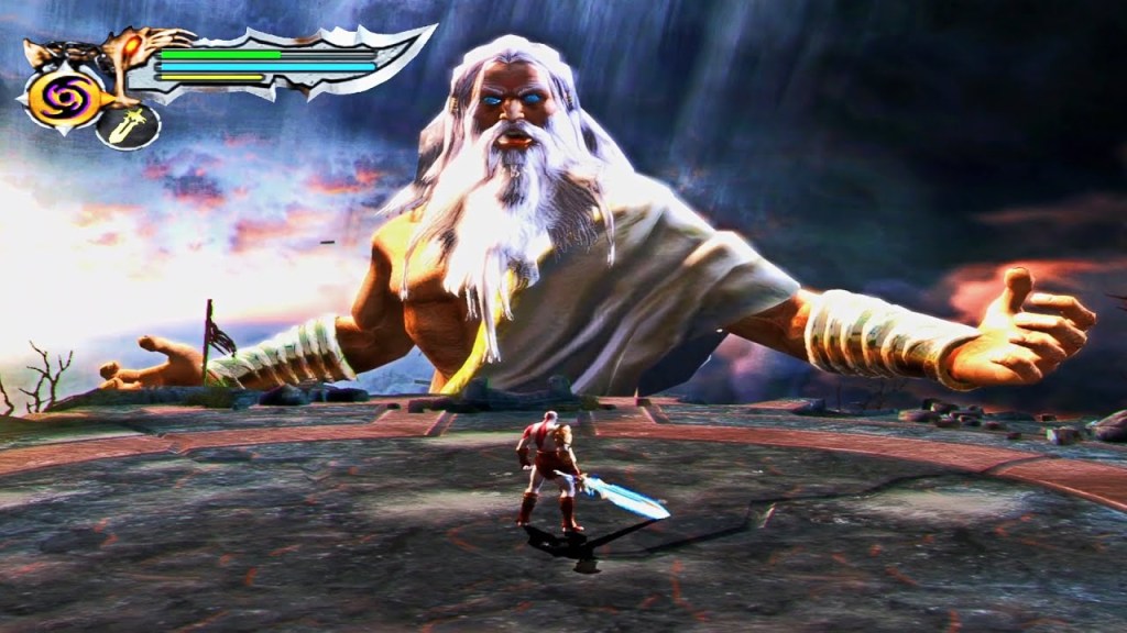 Kratos frees himself from his chains of shame; he forces Zeus’s spirit back into his crippled body and finally kills his father, completing the cycle of slaying yet again. For a moment, all is quiet. Kratos takes in the destruction of Greece, the disaster his wrath has brought on the innocent. He finally understands his consequences of destroying the divine status quo, the consequences of his vengeance. Athena’s voice shakes him from his realization; she congratulates him for his service, for performing admirably as her soldier. Kratos has once again been used as a god’s sword, wielded by Athena to overthrow their father and create a new order with which she can rebuild Greek civilization.