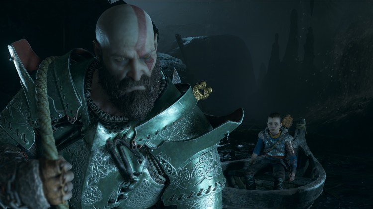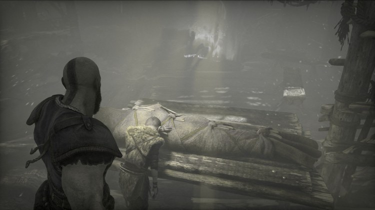 In desperation, Kratos hurries Atreus to Freya’s home, begs her to help him with magic. Freya agrees, but she tells Kratos what he already knows: Kratos’s lack of self-acceptance is what is wounding his son. In order for Atreus to truly heal and prosper, Kratos must find it within himself to share his true nature with his boy. Needing its heart to cure Atreus, Freya tasks Kratos with slaying the Bridgekeeper of Helheim, a troll who watches over dishonored souls as they enter the realm to begin their posthumous eternity. However, Helheim is a frozen realm, its dangerous denizens impervious to ice. In order to succeed in his quest, Kratos must find fire. In perhaps the best execution of the single-shot camera trick Santa Monica utilizes, players watch an entire gamut of emotion spread across the solemn Kratos’s features. He leaves Freya’s home in silent conviction. Throughout the game, Kratos and Atreus frequently travel via boat, harkening back to viking imagery of longboat combat. Usually these trips are peppered with conversations; sometimes Kratos begrudgingly imparts knowledge on his son, or Atreus may teach Kratos about Norse history. Now as Kratos boards a nearby boat, he is saddled with a silence louder than any of the monstrous roars or metal clanging he has grown accustomed to hearing.