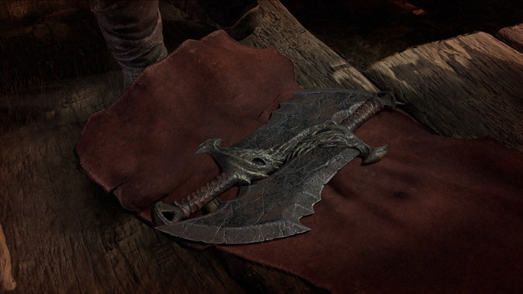 While Kratos struggles with storms in his heart, the gravity of his upcoming decision weighs heavily on him. Though his exact destination is unknown on an initial playthrough, the player senses Kratos is about to slide backward, slip into the old angry Greek God of War. To signify this, the camera pans away from Kratos’s tortured expression to reveal Athena’s grinning ghost, her quiet smile taunting the Spartan as he rows forward. The spirit vanishes and Kratos reaches his trip’s terminus: the cabin he built with Faye, still damaged from his skirmish with Baldur. As Kratos enters the cabin, he pulls aside a rug and pries up loose floorboard. Buried beneath his new life lies the symbol of his Grecian suffering, the ugly reminder of his shameful service to the old pantheon. Kratos unveils the Blades of Chaos, weapons that, no matter how hard he tried, he could not escape from. As is revealed through conversations with Atreus in Ragnarök, Kratos tried many times to throw away the Blades, to rid himself of the stubborn reminders of his past misdeeds. However, the weapons always found their way back to him, refusing to let him forget his mistakes. Kratos taking up the Blades of Chaos once again is also his first step to truly being a father, to accepting what he once was and what he still could be. In order to be better, Kratos understands he must let the old ghosts in. As the god of war turns to leave his home, Athena’s ghost waits in his doorway.
