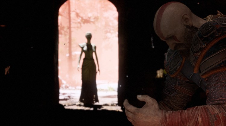 A frantic Atreus manages to pull him back to reality, visibly shaken by his father’s momentary vanishing act. Though Kratos perceives he has only been gone a few minutes, the scene before him reveals the truth: while he was trapped for a much longer period of time, Atreus was forced to defend himself against a horde of Dark Elves. As Kratos absorbs the sheer volume of corpses littered at his feet, he finally sees the harm he is inadvertently causing his son, the great rage that has been passed on to Atreus. Atreus, lonely and frustrated, accuses Kratos of never really loving Faye, of not being capable of loving anyone. “Do not mistake my silence for lack of grief,” Kratos snaps back. “Mourn how you wish. Leave me to my own.”