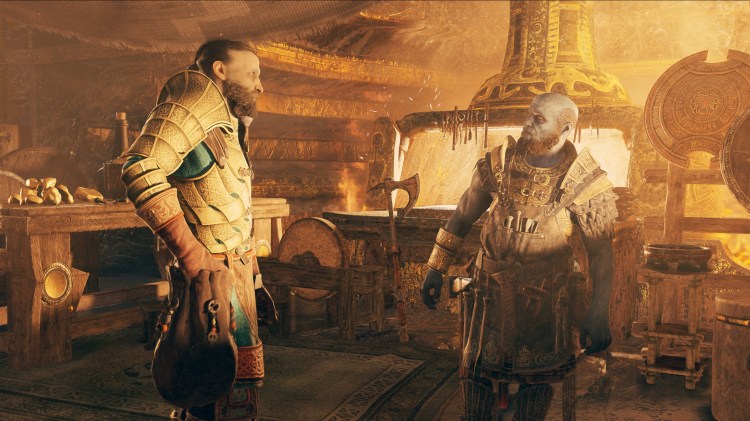 Each of the central characters in God of War is saddled by the grief of a fractured relationship, some broken bond that mirrors the one between Kratos and Atreus. Along their journey, they meet Brök and Sindri, a pair of dwarven brothers who were once a famous duo of blacksmiths. The siblings have long since separated after a series of petty spats, though neither can really remember what the final tipping point was. As Kratos and Atreus fulfill various tasks for them, Brök and Sindri each betray interest in the other’s well-being by asking how they are doing. Their fraught relationship is an obvious parallel to the strained bond between Atreus and Kratos, the inability for loved ones to truly connect, the thematic tragedy at the heart of God of War. While Kratos finds begrudging kinship with the gruff, irreverent Brök, Atreus connects with the good-spirited Sindri. The dwarven brothers actually created the Leviathan Axe and many other famous Norse weapons, including Thor’s hammer Mjolnir. They crafted Kratos’s signature weapon for Faye, who they both loved dearly for her compassion, the trait Atreus shares. Sindri even gifts Atreus with arrows crafted out of mistletoe, said to be stronger than typical ones.