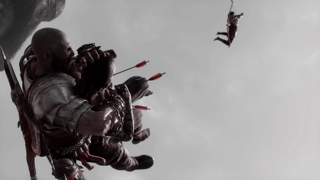 But Atreus steps up next to him, Kratos’s living redemption. Though imperfect and far too much like Kratos for the Spartan’s comfort, his son’s life is precious. In Atreus, the tired Kratos finally finds a reason for moving forward, for clinging to life despite all of the dead who haunt him. Kratos has lived through an impossible degree of heartache and hardship, suffered many mortal wounds of the body and soul. But he is still here on the precipice of danger, his boy climbing onto his back, eager for the adventure that still awaits them. Through trials and travel, the boy has grown to trust his father implicitly, the walls between them crumbling slowly down. He has seen some of Kratos’s worst deeds and loves him anyway, finds comfort in his father’s steady strength. With Atreus clinging tight, Kratos falls forward from the path, only now not to die, now no longer on his own.