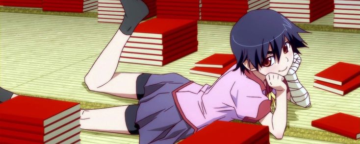 Araragi has a warped philosophy regarding human relationships. He views them as weaknesses, believes that emotional strength stems from self-imposed isolation. In the light novel Kizumonogatari, Araragi expresses this school of thought to a friend: “If I had friends, I’d have to start worrying about them, right? If my friends were hurt, I’d feel hurt too, and if they felt sad, I’d feel sad too. You end up with more weak points, so to speak. I think that’s the same as becoming weaker as a person.” In other words, Araragi refuses human connection so that he will remain emotionally undamaged, afraid of the potential hurt that comes from relationships with others. By the time Bakemonogatari begins, he only has three notable relationships. One of these is his close friendship with Hanekawa, forged due to her persistence in growing close to him. The other two are with Meme Oshino and Shinobu, though even those are relatively distant: he seeks Oshino’s advice when encountering new apparitions, and he allows Shinobu to slowly recover her strength by drinking his blood. Oshino repeatedly suggests Araragi should abandon Shinobu and let her die; after all, if he stops letting her feed on him, Araragi will eventually lose his partial vampirism and become human again. However, Araragi feels immense guilt and responsibility for her weakened state, so he remains resolute that he will help her stay alive.