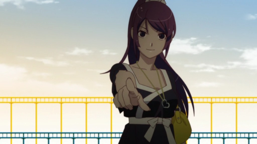 With a head full of doubt, Araragi agrees to accompany Senjougahara on their first real date together. While they have spent a lot of time together alone, it has mostly been studying or quick lunches at school. Senjougahara proposes a true romantic outing, a trip to a place of her choosing. Episode 12 is an isolated story, revolving entirely around this date. Monogatari frequently has episodes that basically only depict dialogue between characters, with little physical action other than characters walking from one place to another. One of the strengths of the series is that these episodes are never boring, that the conversations between the series’s strong cast of characters can be as gripping as one of the rare battle scenes. Episode 12 of Bakemonogatari is one of the best examples of this, and from the standpoint of dialogue and character development, it may be one of the single greatest anime episodes of all time.