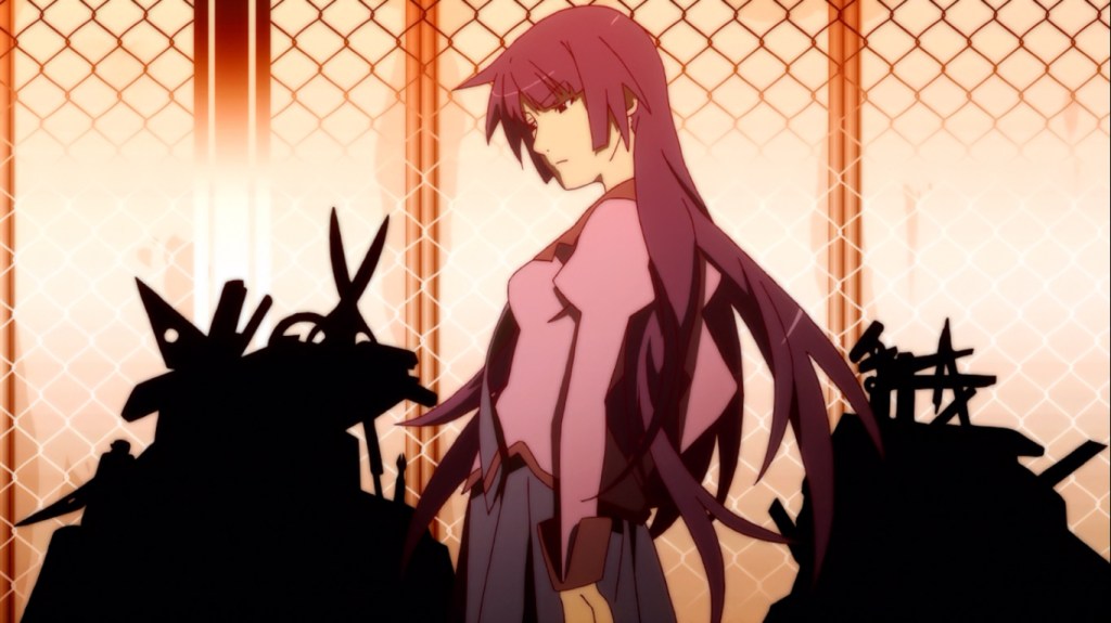 Gatekeeping snobbery aside, I immediately understood what they meant. In short, Monogatari follows high school senior Koyomi Araragi as he helps out various characters with supernatural afflictions. These problematic entities and curses are referred to as “oddities” or “apparitions,” depending on the translation. Each individual arc in Monogatari is named after its central character, usually the victim of a malignant spirit or curse, and whatever their given affliction might be. By the end of the first of these, “Hitagi Crab,” I knew I was watching one of those special pieces of media that would ultimately affect how I experience and think about stories as a whole. My first viewing of Monogatari changed me for the better. To this day, it remains one of my favorite stories of all time, regardless of medium. Though I knew what I was watching was special, I didn’t have the experience or vocabulary to express why exactly it moved me. Upon revisiting it, I hope the better part of the last decade has helped me find the words to do that.