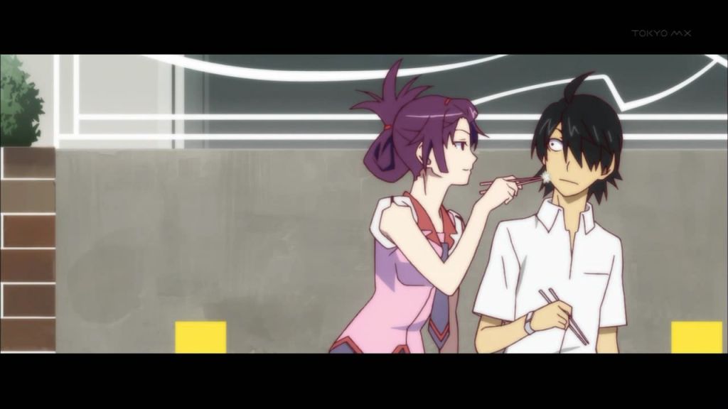Monogatari‘s greatest strength is in its characters. The episodic stories are firmly rooted in the perspective of a given entry’s protagonist. Although most of these tales follow one recurring protagonist, there are several notable arcs led by other characters. Each character has a personalized point of view, and a variety of narrative and production techniques are utilized to essentially allow viewers to see through the eyes of an entry’s respective protagonist. The characters in Monogatari are unique and compelling across the board, though Bakemonogatari specifically highlights two of the franchise’s most dynamic: Koyomi Araragi and Hitagi Senjougahara. More importantly, the series depicts and arguably revolves around their developing relationship, one that is intricate, complex, and realistic. Applying a strict genre to Bakemonogatari is difficult; however, I would argue that it is most clearly a romance, and one of the finest in the genre at that. The romance at its center requires both parties to overcome inherent character flaws and grow both individually and together. By the end of the series’s 15 episodes, viewers have witnessed the intricate development of a relationship that feels true, a bond between fictional characters from which we can learn something in reality about personal progress, being human, and how to love.