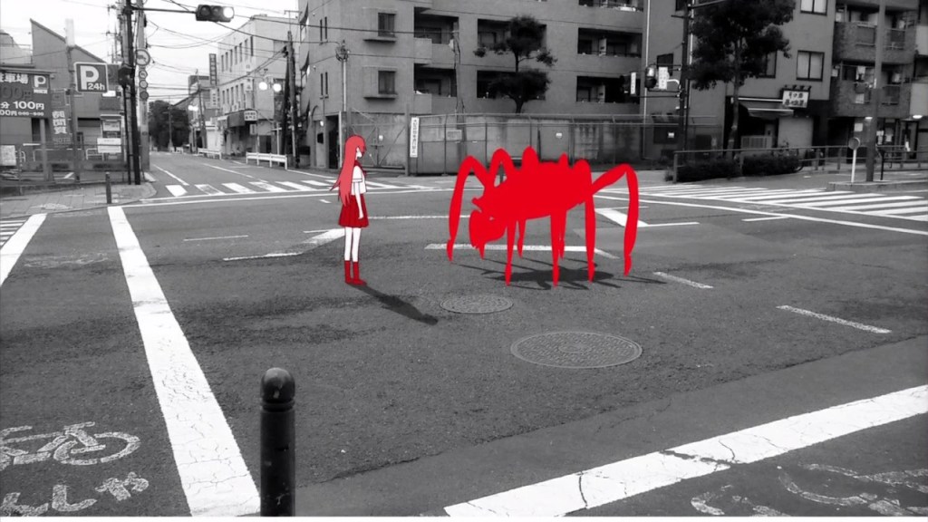 Hachikuji herself is the apparition, and Araragi is actually the afflicted one in this case. Through a defeated monologue, Hachikuji details her death in a traffic accident. She is another victim of a broken home; her parents’ separation left her mostly alone in her father’s custody. Missing her mother, she set off on her own into the city and was killed when run over at a crosswalk. Now she is essentially a ghost, haunting those who, in their own way, wish to be lost and unable to return home. Due to his familial unrest, Araragi is an easy target. Tsubasa Hanekawa—who briefly stopped by and conversed with Araragi and Hachikuji while Senjougahara was away—is also able to see Hachikuji, due to her own domestic struggle. Without the catharsis she experienced during the climax of “Hitagi Crab,” it is possible that Senjougahara would have also fallen victim to the apparition. However, due to her personal growth, she resists the curse and is able to help Araragi solve this new oddity-related issue and provide Hachikuji some personal resolution.
